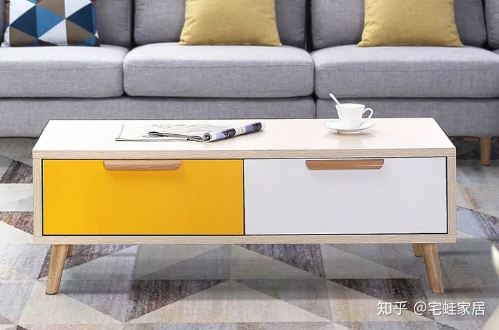[宜華] 北歐風(fēng)格 櫸木拉手兩抽屜茶幾